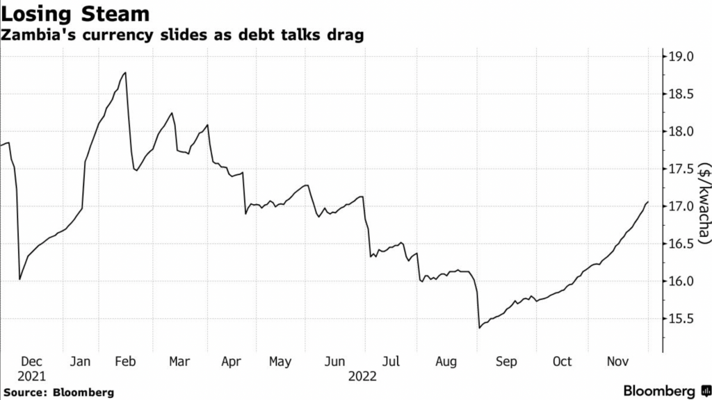 Zambia’s debt restructuring. The level of debt relief Zambia is seeking from its creditors is delaying a crucial restructuring process—and could derail its IMF agreement, Bloomberg’s Ama Tanoh reports.